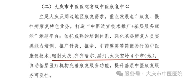 今后,我院将锚定大庆及周边地区康复需求,重点发展老年康复、慢性病康复等特色业务,聚焦脑卒中、慢性肌骨疼痛、儿童生长发育障碍、其他老年科疾病及各类慢性病高发病种的系统康复,全力构建辐射大庆、齐齐哈尔、黑河、大兴安岭等地市的中医药康复服务体系,充分发挥省级中医康复中心的示范引领与带动作用,为龙江中医康复事业的发展做出积极贡献。