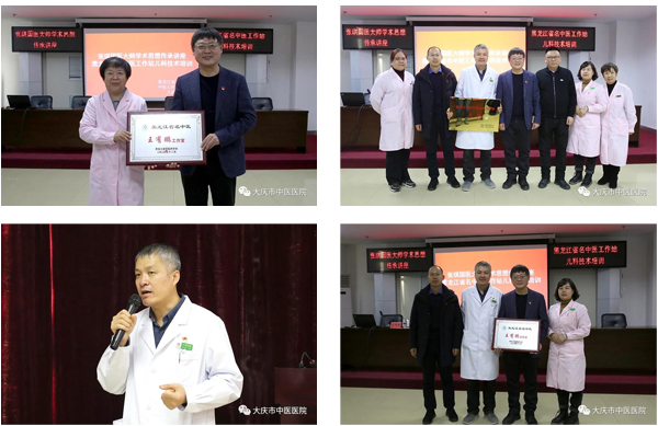 黑龙江省中医药学会中医儿科**委员会主任委员王有鹏教授为我院“黑龙江省名中医王有鹏工作室”“黑龙江省儿科名中医团队工作站”授牌,并与副主任委员王海教授分别作了《国医大师张琪学术箴言儿科传承心悟》及《张琪教授应用清心莲子饮**肾脏**经验介绍》的学术讲座。