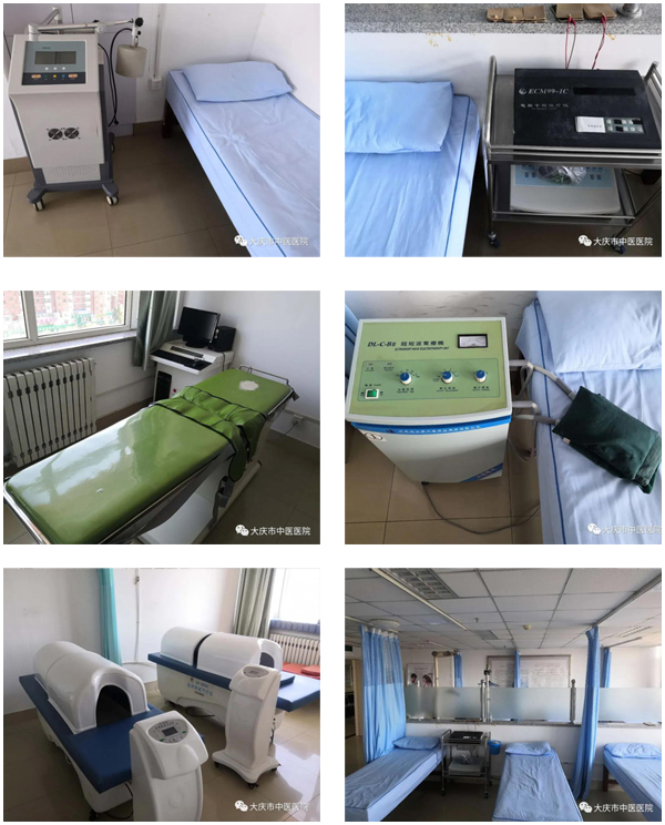 科室现有诊疗设备:手提式X线透视机1台;“C”形臂透视机1台;比利时进口“Gymna”体外冲击波治疗仪1台;国产体外冲击波治疗仪1台,双级射频治疗仪1台;微波治疗仪1台;超短波治疗仪3台;ECM99-IC型电脑中频脉冲治疗仪3台;中药熏洗治疗仪2台;颈椎牵引器2台;腰椎多功能牵引床1张;威伐光治疗仪1台,中医定向透药仪2台。