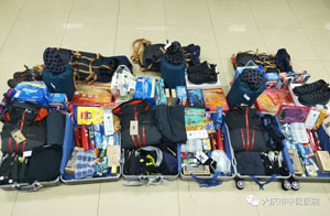 为了做好出行人员的后勤保障工作,院办、物资采购中心人员,连夜为队员们准备出行物资,疫情期间商场不能正常营业,他们想尽一切办法,为队员们准备了袜子、内衣等衣物120余件,食品、应急药品、生活用品及防护用品等,小到创可贴,大到户外用具样样俱全。临行前院食堂员工起大早为他们包了饺子做了一桌丰盛的饭菜,让他们在临行前品尝到家乡的味道,亲人的味道。
