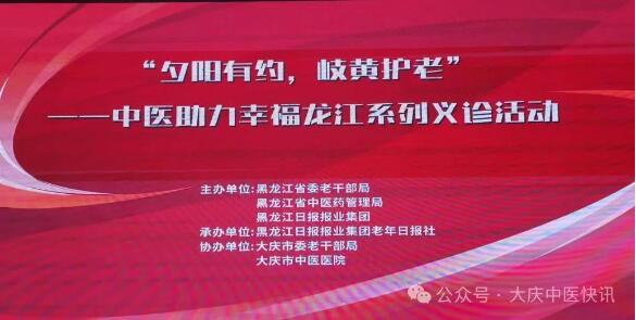 为充分发挥中医药养生保健特色优势,引导中老年人养成健康生活方式,近日,由我院8个科室组成的专家团队走进大庆市老干部大学,参加由黑龙江省委老干部局、黑龙江省中医药管理局和黑龙江日报报业集团老年日报社联合发起的“夕阳有约岐黄护老”中医助力幸福龙江系列义诊活动。