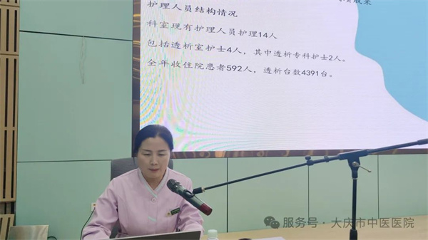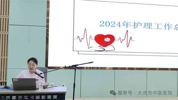 在护理工作总结大会上,护理部主任宋晓玲作全院护理工作汇报。她表示,2024年护理部在院党委的坚强领导下,党建与业务工作协同发展,在创新开展优质护理服务、提升护理质量与安全管理、加强护理学科建设、规范护士分层管理、促进护理人才培养、强化中医护理内涵、聚焦专科能力建设、推动护理科教研等方面有了新的突破,也深入剖析了当前护理工作中面临的挑战与机遇,并以此为基点,简明扼要地提出了2025年度护理工作的中心任务与发展规划,为医院高质量发展筑牢护理根基。同时,她强调总结大会的成功举办,不仅是一次工作成果的展示,更是护理团队精神和专业能力的集体展现,她鼓励大家借此次汇报的机会,回顾过去一年的工作得失,总结经验教训,相互学习、取长补短,不断推进护理工作向前迈进。