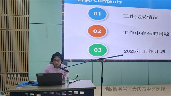 在护士长工作汇报会上,大家分享了在提升护理质量、优化工作流程、强化团队协作、发展中医特色等方面的创新实践和深刻见解,全面展示了各自科室在2024年的护理工作亮点及取得的成效。在展望2025年工作时,护士长们纷纷盯重点、抓关键,表示将以医院高质量发展为目标,根据科室的实际情况,科学规划护理工作,持续提升护理工作效率和质量。