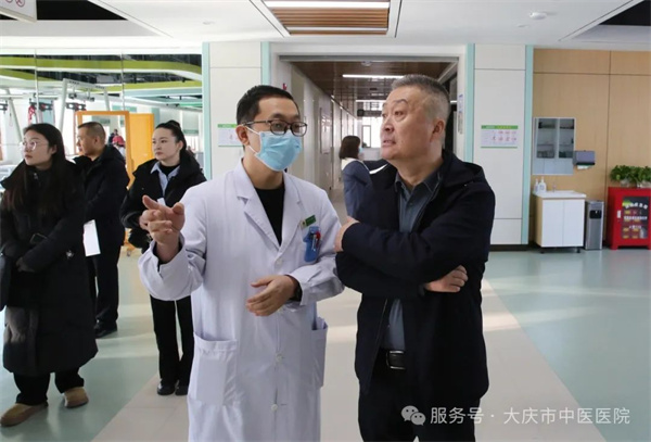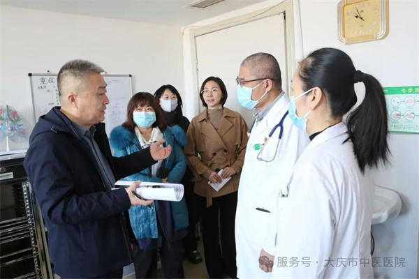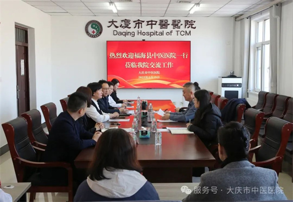 2月19日,在大庆市卫健委中医科科长高超的带领下,福海县中医医院院长乔广、药械科主任万丽云、康复科技师努尔扎提·海依拉提一行三人来到我院进行为期4天的考察交流。大庆市中医医院院长肖岷、副院长王军及相关科室长参加交流见面会,与福海县医疗团队一起就医院运营管理模式、便捷服务流程、先进医疗及康复技术、药剂规范管理及中医特色护理等方面工作开展座谈交流。