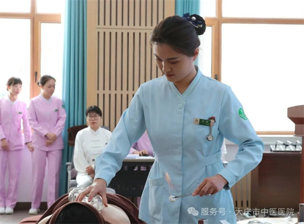 表彰会上,护理团队还通过多种形式展现专业魅力与中医特色。艾灸、火罐等中医特色护理技术展示,指尖流转间尽显岐黄妙法的独特魅力。中医养生操,刚柔并济,传递出传统养生文化的活力,彰显了医院将中医智慧融入现代健康管理的实践成果。