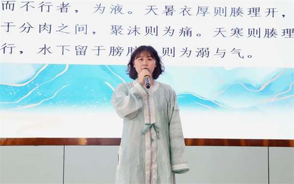 副院长王军以深厚的中医理论和文化基础倾情吟诵《灵枢》选段,将大赛气氛推向高潮,展示了中医人对经典的熟稔与热爱。