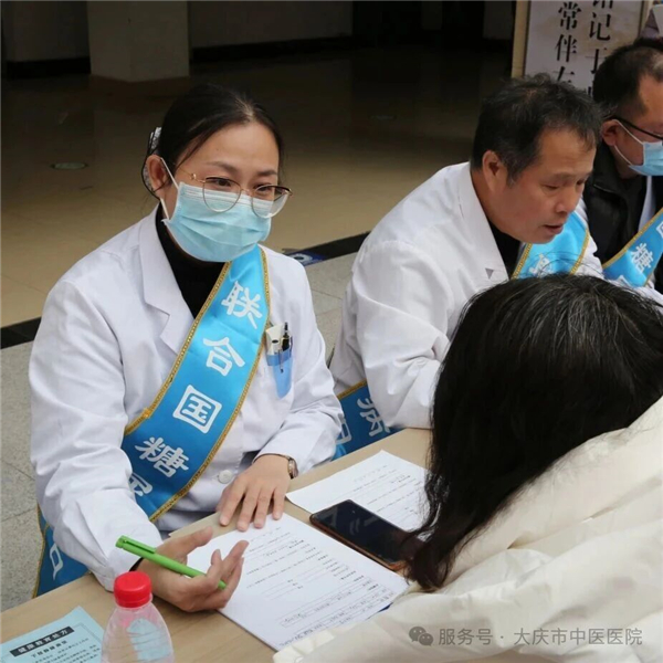 为迎接2025年联合国糖尿病日,落实 “了解更多,行动更多,关注职场糖尿病” 的倡导主题,11月13日,大庆市中医医院内分泌科联合心病肺病科、脑病科、肾病风湿病科、眼科、周围血管科等多学科专家,在医院门诊大厅开展 MDT 多学科联合义诊。本次活动面向糖尿病患者及高危人群提供免费健康服务,为群众搭建便捷的健康咨询平台。