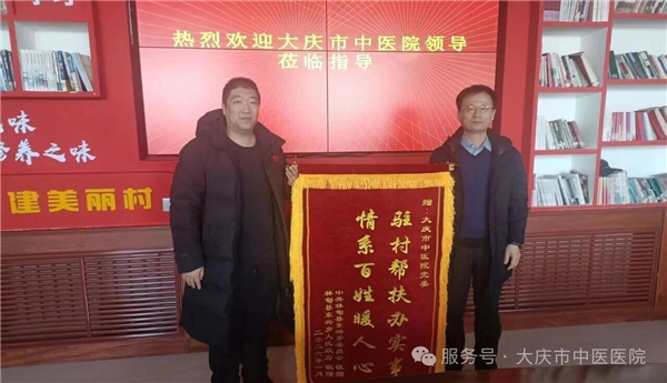 林甸县东兴乡党委书记王伟、乡长潘青国和新胜村代理书记张国发参加了座谈交流,高度评价我院驻村工作,对我院发挥医疗资源优势为村民进行义诊宣教表示诚挚感谢,并赠送了精心制作的锦旗。